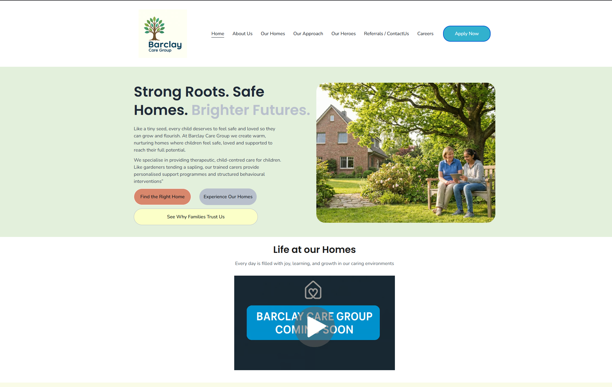 A comprehensive, custom-built website for a child-focused care organisation, designed to clearly communicate their therapeutic and personalised services. The site highlights their care homes, structured support programmes, and the compassionate approach of their trained carers.